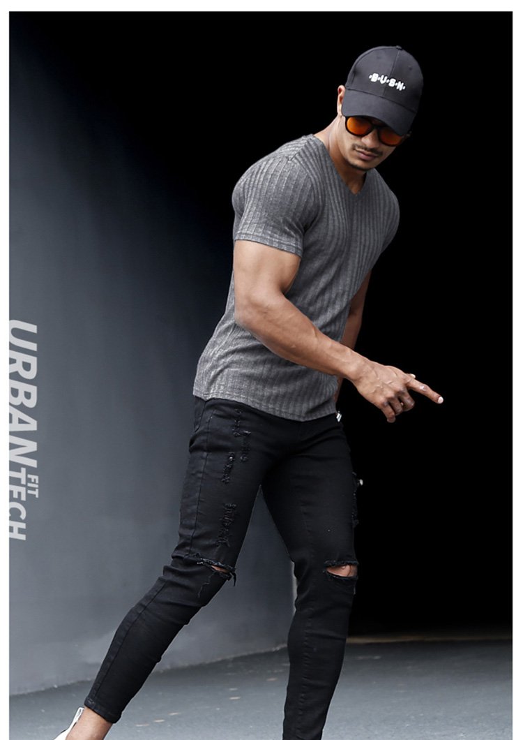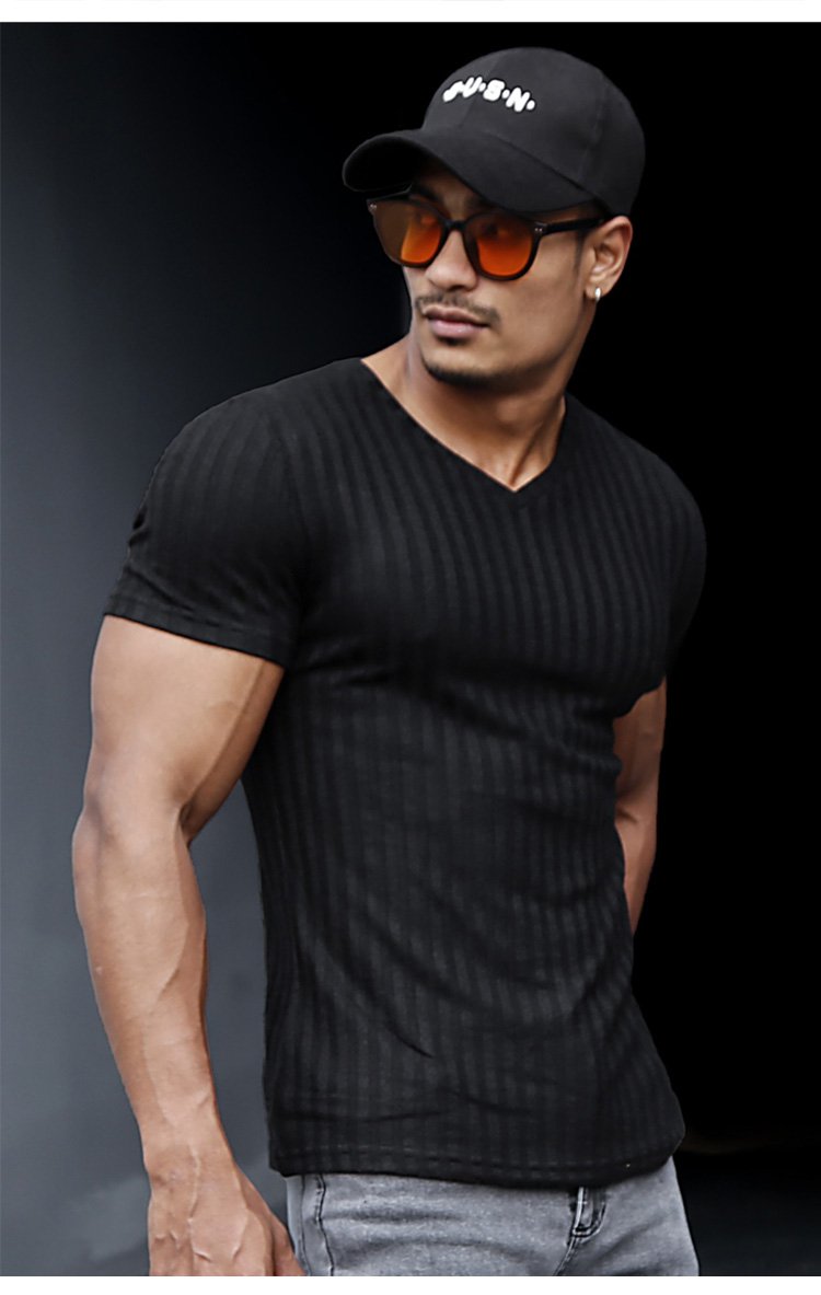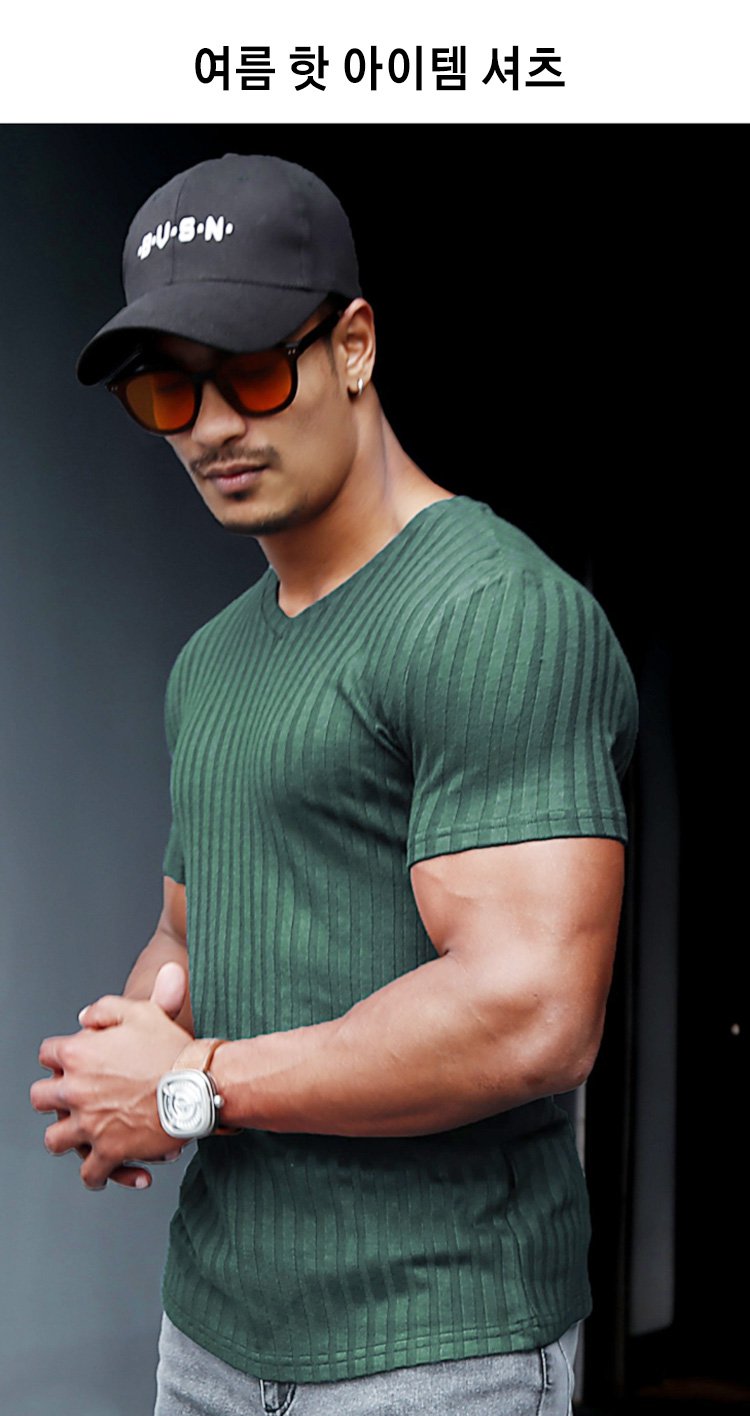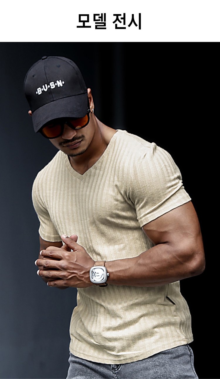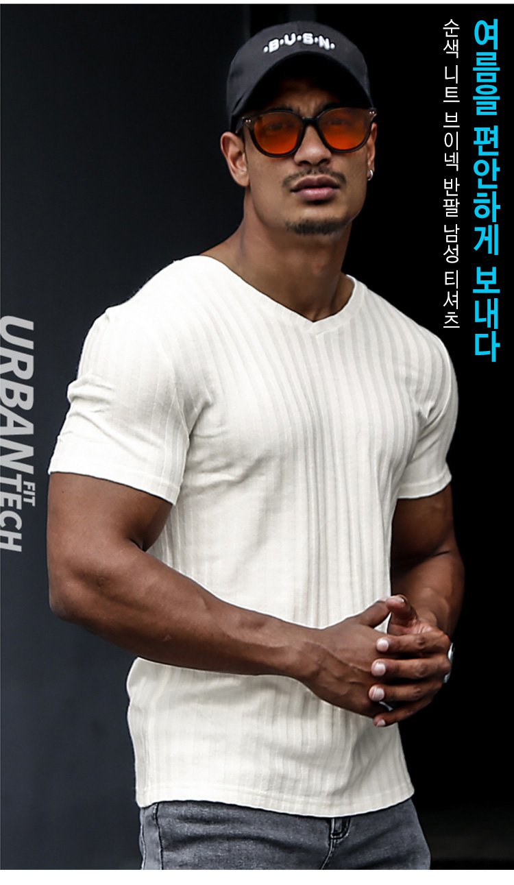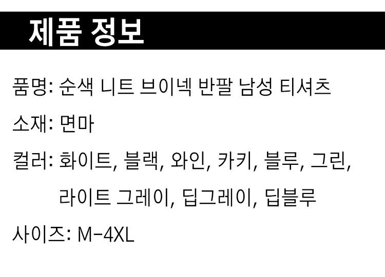 제품명 : 솔리드 컬러 니트 V넥 반팔 남성용 티셔츠